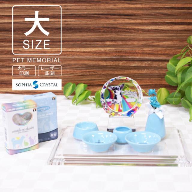 ペット 位牌 仏具セットKP-4-ASET(大)クリスタル 写真 カラー 両面印刷 誕生石 レーザー 彫刻 フォト 遺影 供養 ペットメモリアル 陶器 手元供養 仏壇 葬儀 49日 虹の橋 思い出 おもいでのあかし パステル かわいい 犬 猫 うさぎ インコ 小動物.