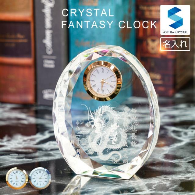クリスタル 時計 龍 SFC-6 置時計 昇進 就職 入学祝い 名入れ 名前入り 還暦 退職祝い 周年記念 創立記念 誕生日 オリジナル ギフト プレゼント お祝い おしゃれ 金 銀 ファンタジークロック 辰 竜 ドラゴン.