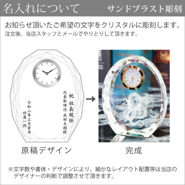 備考 | オリジナル彫刻で世界でひとつだけのオリジナルのクリスタル置き時計が製作できます! |