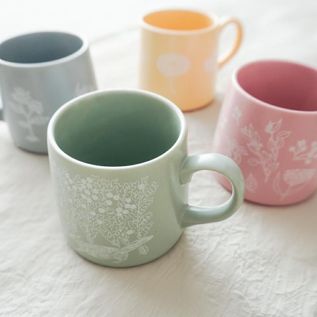 松尾ミユキさんによる、やさしいタッチの草花モチーフが描かれたマグカップです。