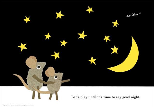 レオ・レオニの作品は、シンプルながらも心温まるビジュアルが特徴で、このポスターも例外ではありません。黒い背景に浮かぶ黄色い星と月が、夜の静けさとともに子供たちの想像力をかき立てます。