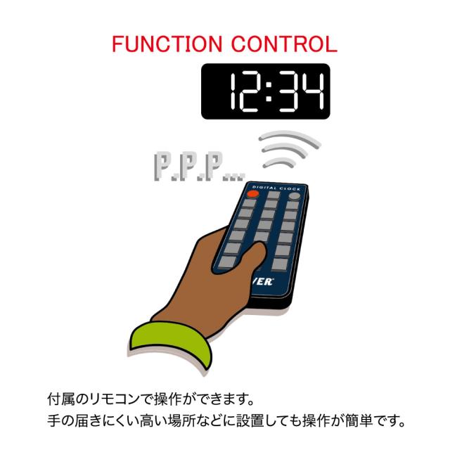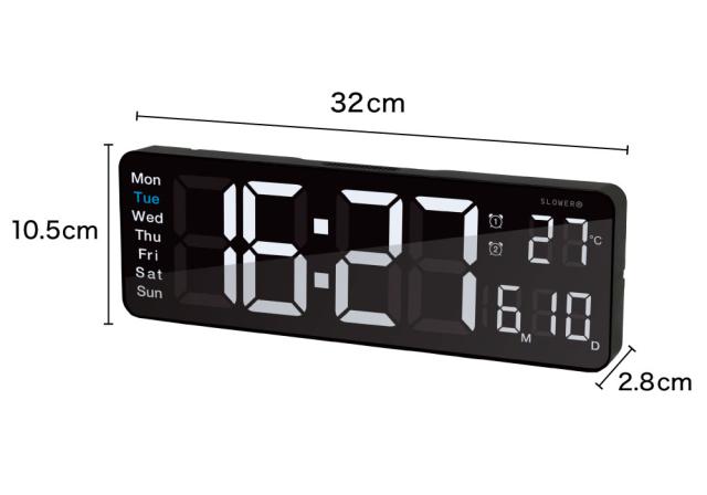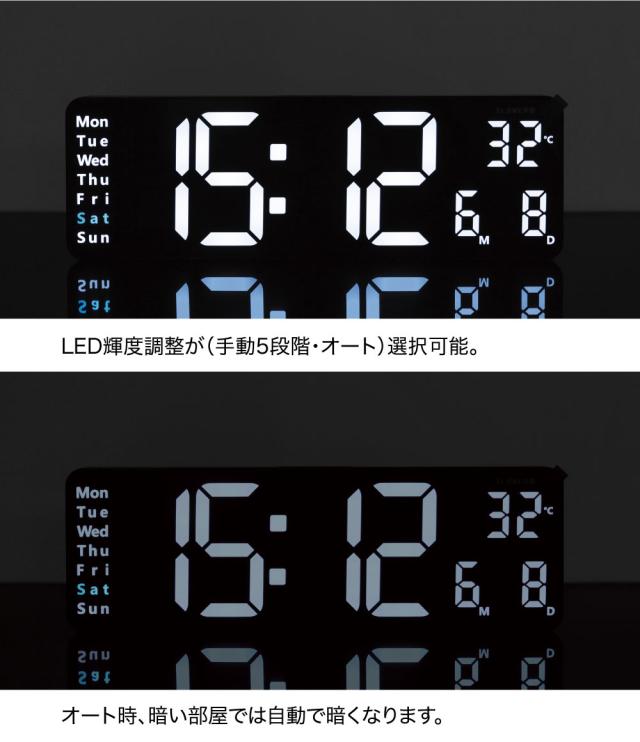 LED CLOCK Rico|時計 壁掛け時計 置き時計 アラーム オート 黒 クロック リモコン ストップウォッチ カウントダウン 自動表示 サマータイム 日付表示 明るさ調整 24/12時間表示切替|TRI SLOWER