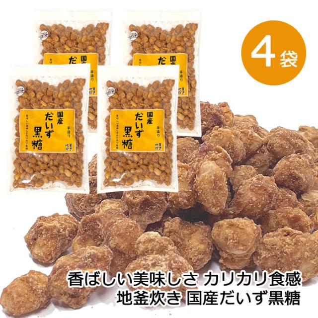 国産だいず黒糖 120g 4袋 沖縄県産 さとうきび 大豆 ダイズ 手造り 地釜炊き 黒糖本舗垣乃花 メール便発送 送料無料