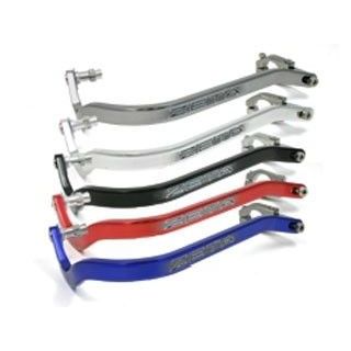 スーパーモタードやエンデューロのトップライダーが愛用する、ZETAのアルミニウムハンドガード。高剛性アルミ合金を使用し、ハンドル周辺のトラブルを回避する。ハンドルのエンド付近を下側に曲げる事により、ライダーの腕の動きを邪魔しない形状。別売りのプロテクターを装着すると、前走車からの泥や飛び石から手を守る。