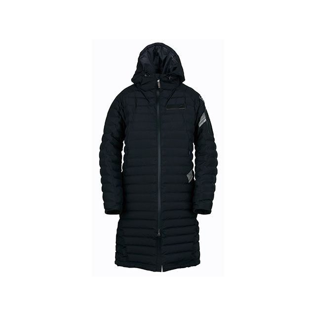レース観戦から普段使いまで活躍するベンチコート。気室の仕切りを生地の織で形成する仕様で防寒性を高めています。袖口にはストームガードを装備しています。中綿には軽く保温性の高いダウンライクを使用。