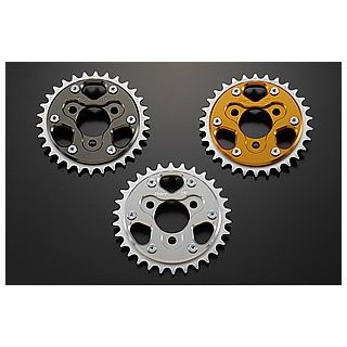アルミ削り出しインナーに、より駆動抵抗の少ない#415チェーン対応のスティールドリブンスプロケットを組み合わせたハイブリッドドリブンスプロケット。
