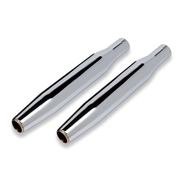 排気の音量、効率を変更したい場合は別売の交換用インナ-サイレンサーをお求めください。真鍮エンドが装着されているタイプのマフラーは別売のメッキエンド/ブラックエンドにも交換可能です。