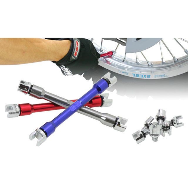 様々な車種に対応する8種類のサイズを揃えた画期的なスポークレンチ。シャフト1本でいろいろな組み合わせが可能。シャフトはアルミ削りだし加工をしており、握りやすく扱いやすい形状。複数のバイクを所有している人でもコレ1本でOK!ビットサイズはスタンダードとミニ用の2サイズをラインナップ。専用ビット8個入り。