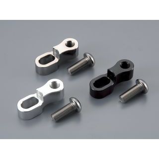 アルミ削り出し・アルマイト仕上げミラーの取り付け位置を約34mm外側へオフセットします。絞りのきついハンドルへ交換した際のミラーの視界確保に。M8正ネジP1.25ボルト付属。