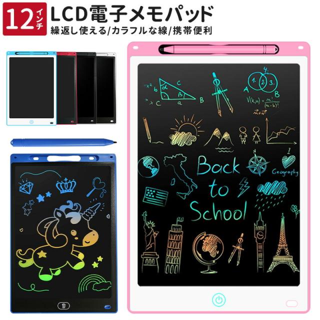 タブレット おしゃれ 12inch 手書き 電子メモパッド カラー線が書ける 電子メモ帳 筆談 デジタルメモ 入園式 プレゼント 子供 電子 ロック機能 メッセージボード お絵かき カラー
