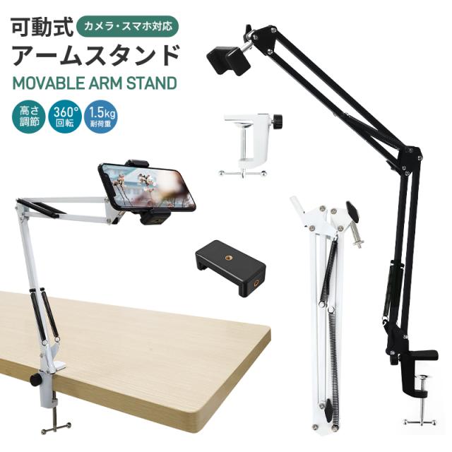アームスタンド マイク 白 黒 Cクランプ 卓上 天板に装着 揺れない 寝ながら オンライン会議 収納可能 撮影 カメラ対応 スマホ固定アーム スマートフォン対応 ライブ配信
