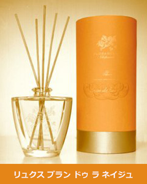 「フローラセント パフュームドゥアンビアンス(リードディフューザー)」は、芳香植物、スパイス、樹脂などから得られるナチュラル香料を使用しています。高級アルコールと水を使ったシンプルでありながら、上質なルームフレグランスです。