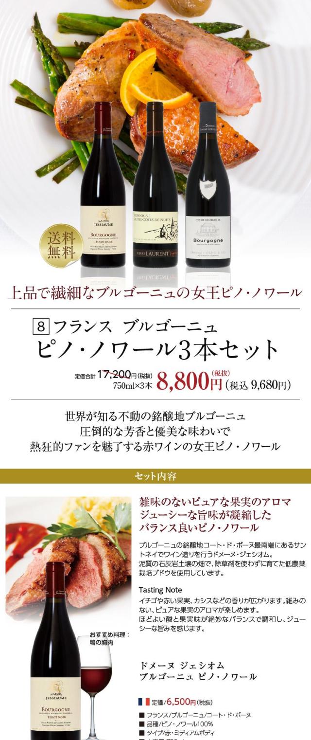 【8】赤ワインセット フランス ドメーヌ ブルゴーニュ ピノ ノワール3本セット 第25弾 750ml×3 送料無料 包装不可 ワインセット