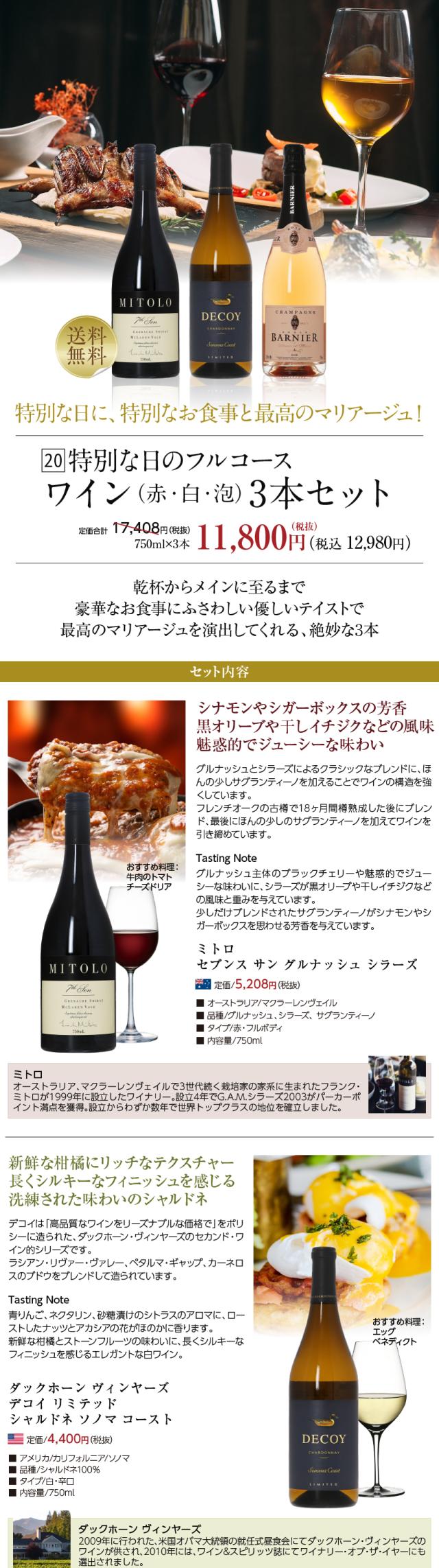 【20】ワインセット フランス 特別な日のフルコースワイン(泡・白・赤)3本セット 第22弾 750ml×3 送料無料 包装不可 飲み比べ ワインセット