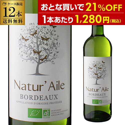 1本あたり1,280 円(税込) 送料無料 ナチュール エール ボルドー ブラン 12本 フランス ビオ 白 ケース 浜運