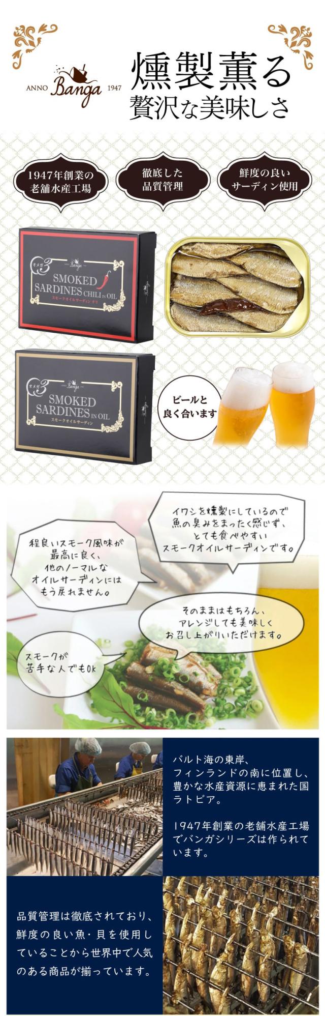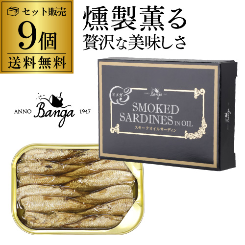 【1缶あたり450円 人気の燻製缶詰】バンガ スモークオイルサーディン 缶 100×9個 缶つま 長S
