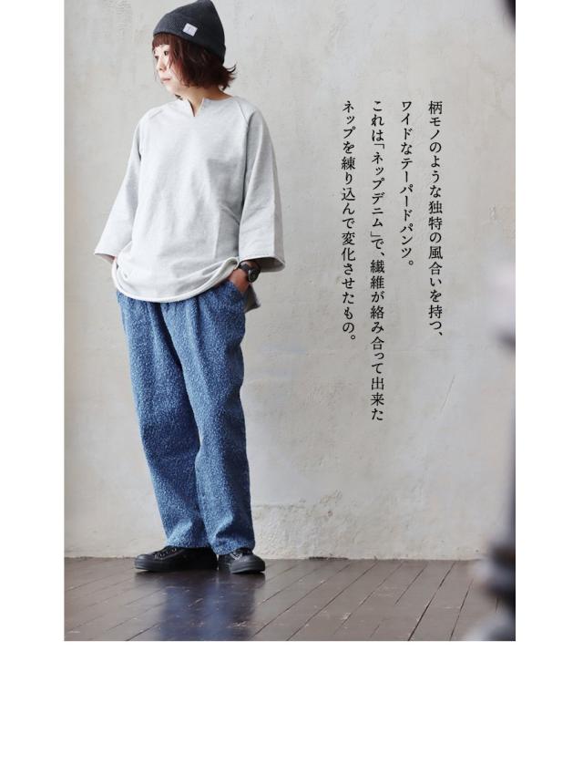 パンツ ワイド メンズ レディース テーパード デニム 綿100% コットン ネップデニム ゆったり 体型カバー 大きいサイズ すっきり 楽ちん リラックス カジュアル パティ