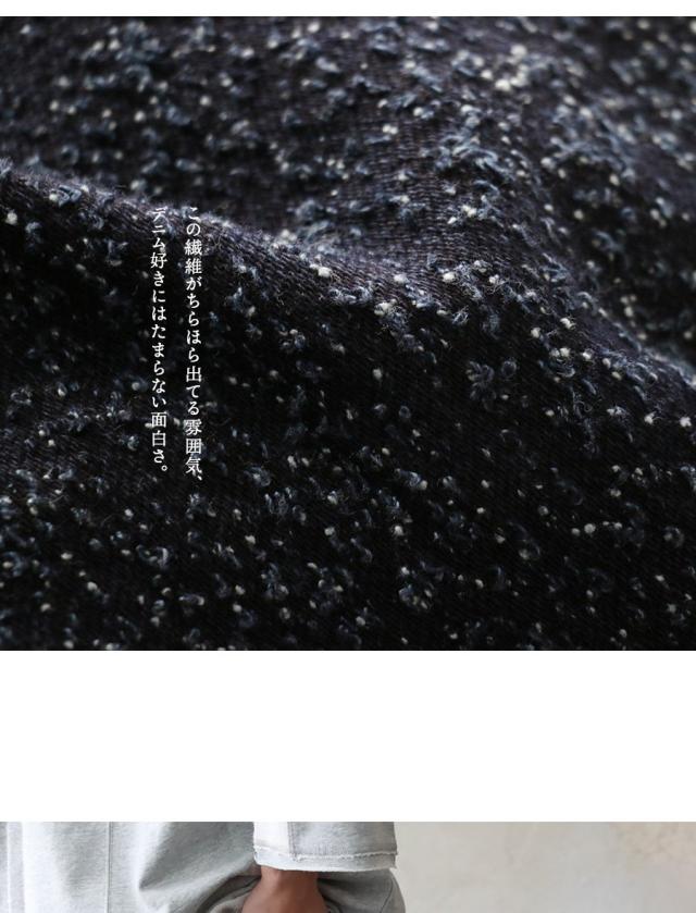 ・これは「ネップデニム」で、繊維が絡み合って出来たネップを練り込んで変化させたもの。