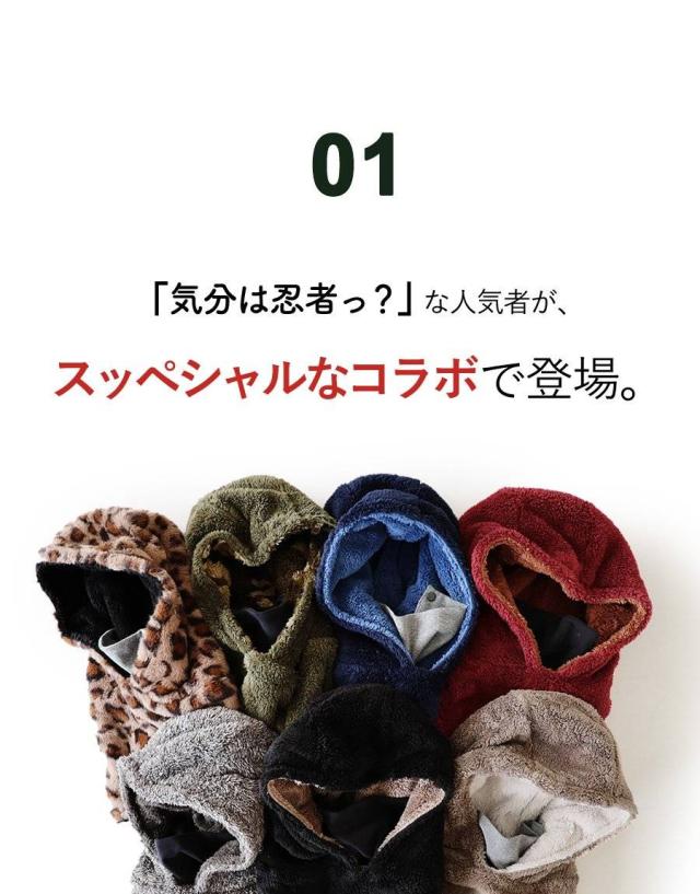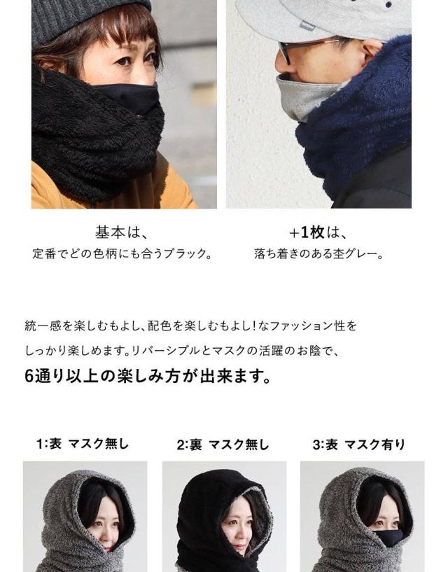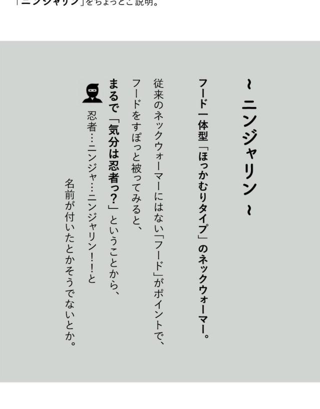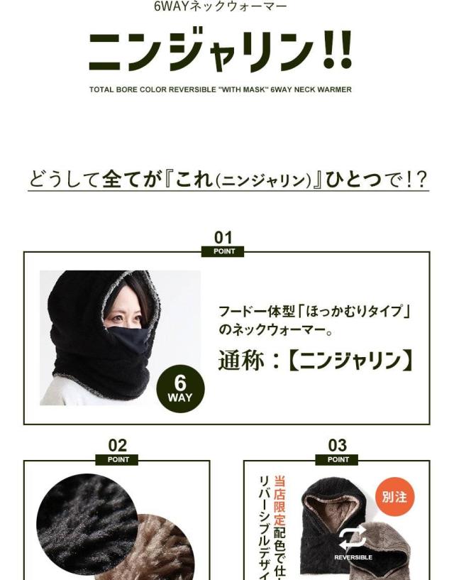 ・フード一体型「ほっかむりタイプ」のネックウォーマー。通称:【ニンジャリン】。