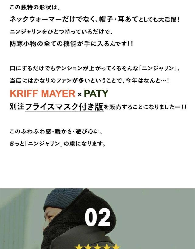 KRIFF MAYER クリフメイヤー 限定 ニンジャリン ネックウォーマー ほっかむり リバーシブル メンズ レディース マスク フェイスガード 耳当て イヤーマフ マフラー 帽子 フード ニット ボアフリース 贈り物 ギフト パティ