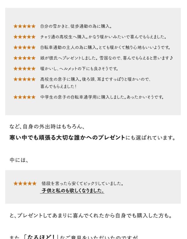 - 寒い朝に着用したいと思います。 本当はヘルメットの下に着用しようと思いましたが、無理そうでした。