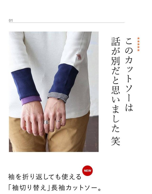[NEW]袖を折り返しても使える「袖切り替え」長袖カットソー。