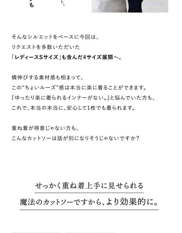 [NEW]1枚着でもラインを拾いにくい“ちょいルーズ”シルエット。
