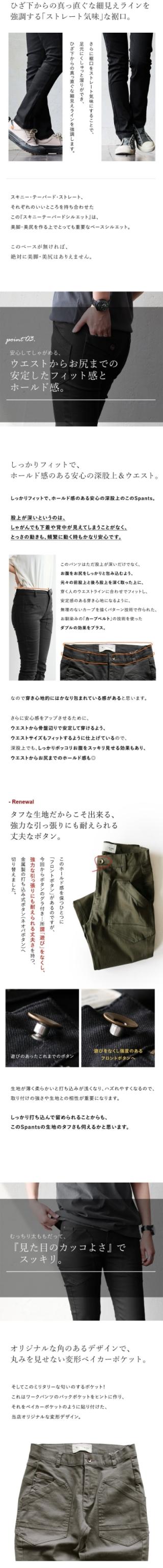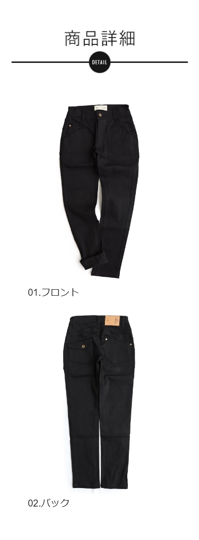 ・吊り上げ型ポケットの視覚効果で、腰の位置を自然に高く見せ、脚長効果up。