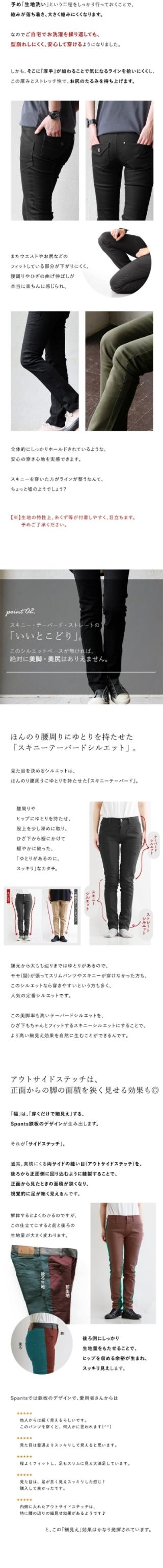 ・脚幅を狭く見せるアウトサイドステッチ。