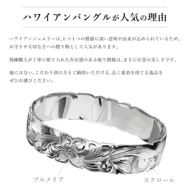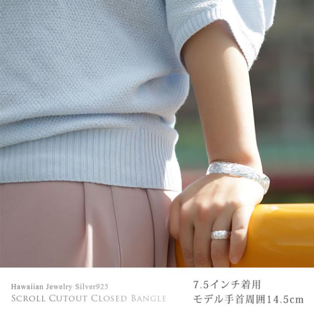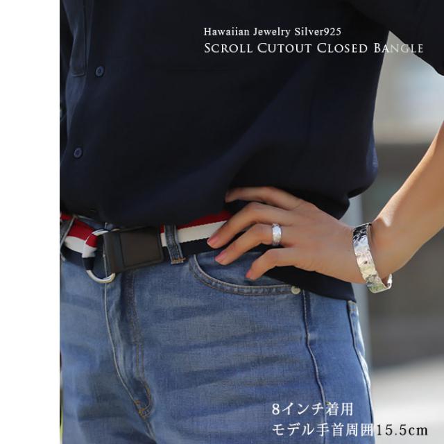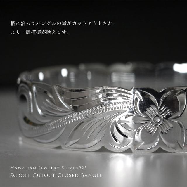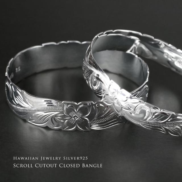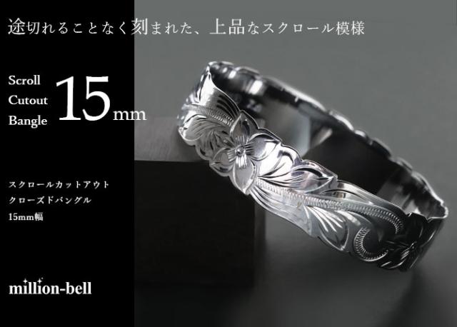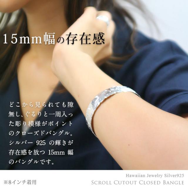 ハワイアンジュエリー バングル ハワイアンジュエリー ブレスレット 幅15mm 刻印 無料 サイズが選べる クローズバングル カットアウト スクロール シルバー925 太め 彼女 妻 女性 レディース 誕生日 プレゼント クリスマス 【品番:B1040-15】
