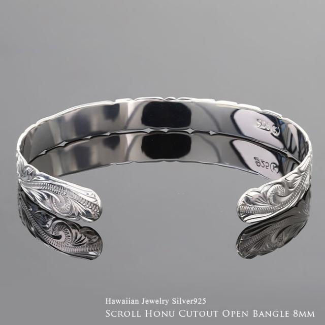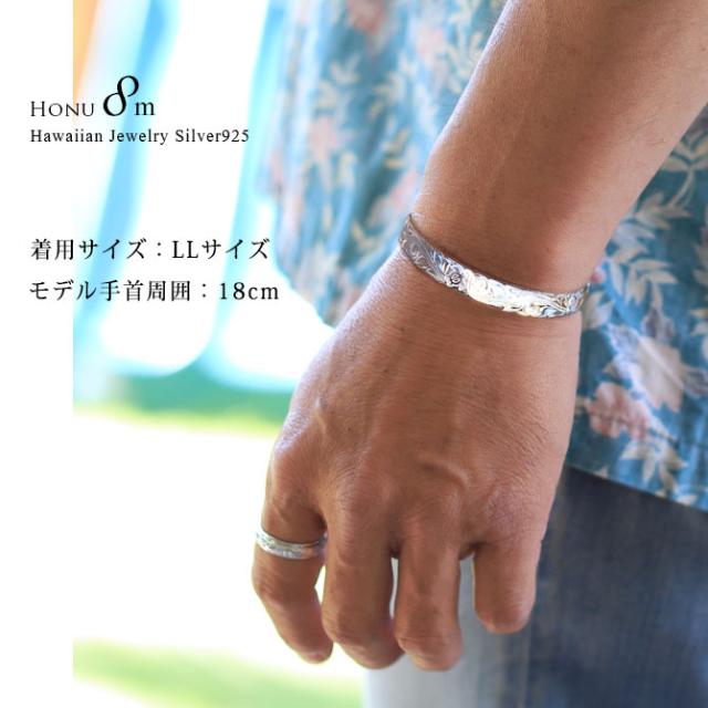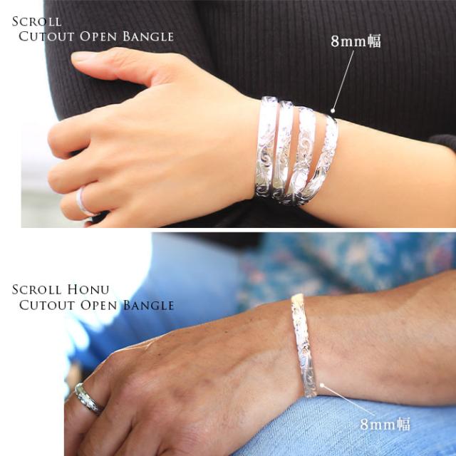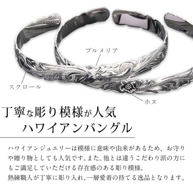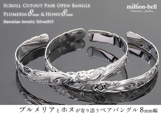 ハワイアンジュエリー バングル ハワイアンジュエリー ブレスレット ホヌ プルメリア ペアバングル 幅8mm 刻印 無料 サイズが選べる オープンバングル ペア 2本セット カットアウト シルバー925 太め カップル 夫婦 プレゼント クリスマス 【品番:B5003-8-B5080-8P】