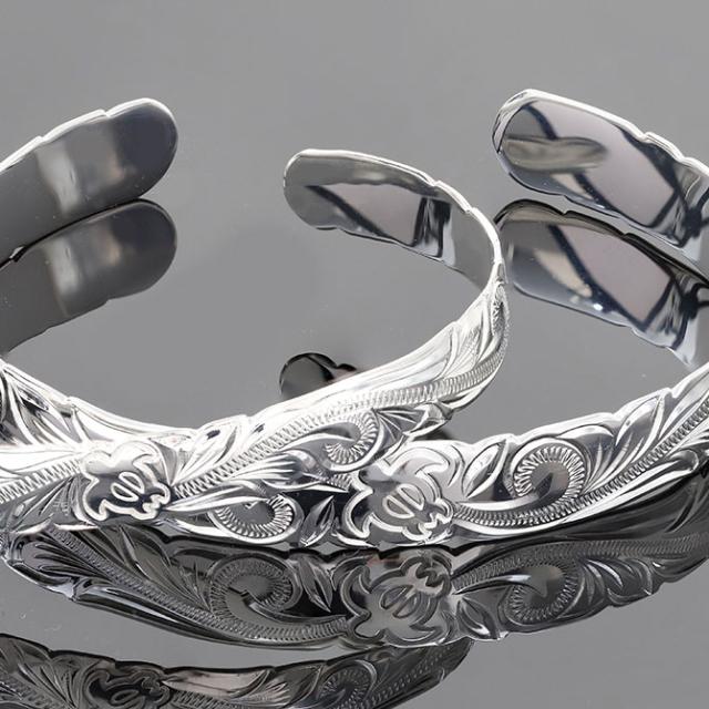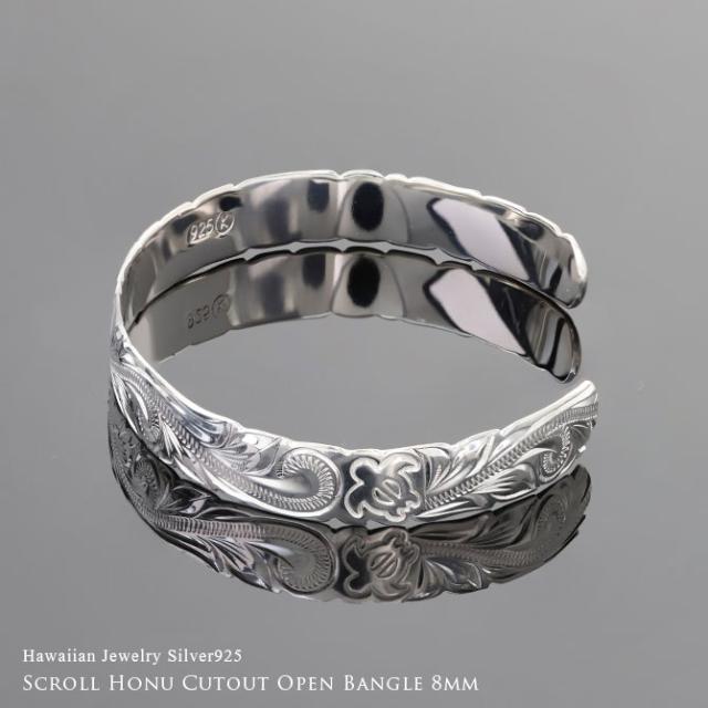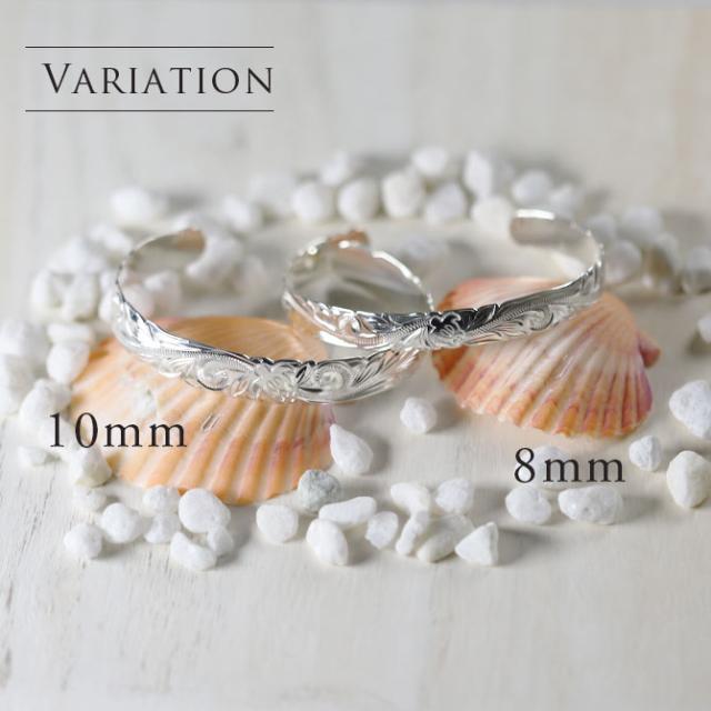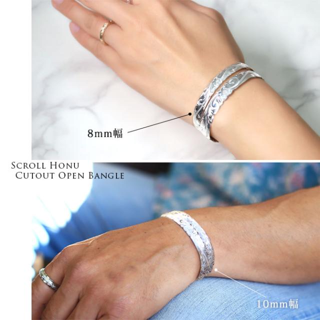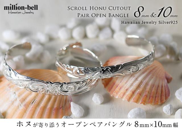 ハワイアンジュエリー バングル ハワイアンジュエリー ブレスレット ペアバングル 幅8mm&10mm 刻印 無料 サイズが選べる オープンバングル ペア 2本セット カットアウト ホヌ シルバー925 太め カップル 夫婦 プレゼント クリスマス 【品番:B5080-8-10P】