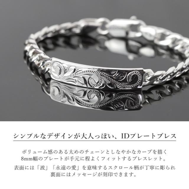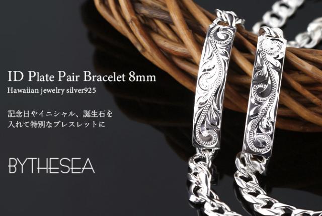 ハワイアンジュエリー ペア ブレスレット 2本セット 刻印 無料 誕生石入れ可 幅8mm 2本セットIDプレート シルバー925 文字 パーツ 名入れ ブレスレット BY THE SEA バイザシー カップル 夫婦 プレゼント クリスマス 【品番:BL102P】