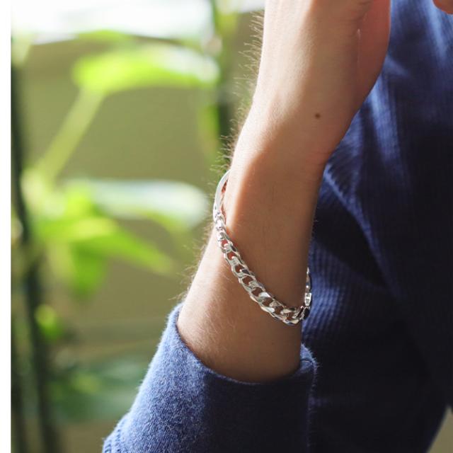 しなやかなカーブを描いたプレートとチェーンが程よく手首にフィットします