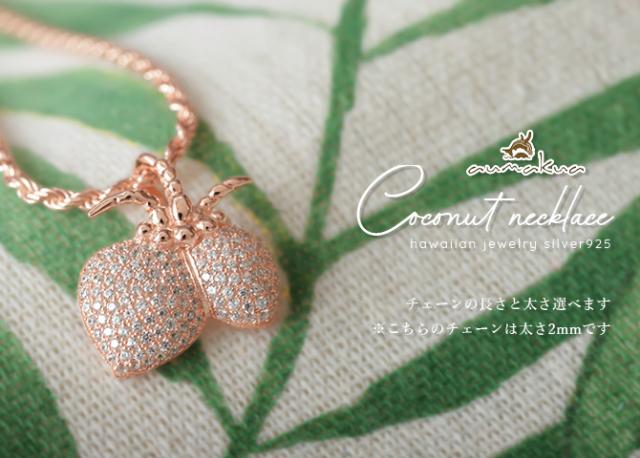 ハワイアンジュエリー ネックレス シルバー925 ココナッツ ピンクコーティング キュービックジルコニア ギフト ラッピング チェーン 長さ 選べる aumakua 【品番:CG-263-11-03】