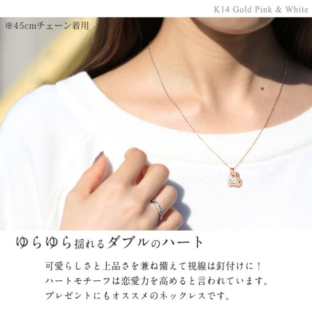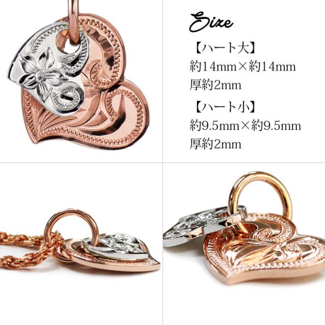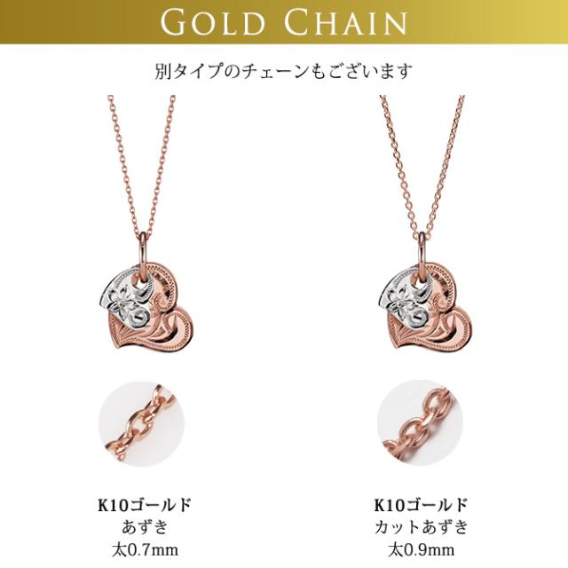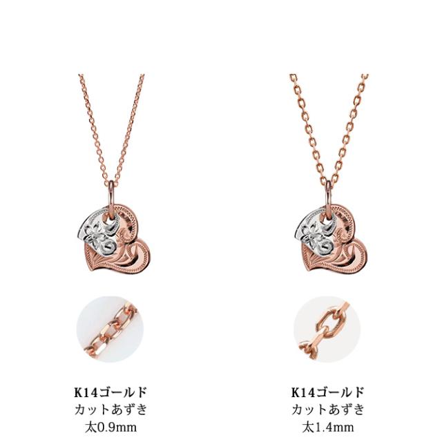 ゴールド ネックレス ハワイアンジュエリー ネックレス 刻印 無料 誕生石入れ可 Wハート 14K K14ピンク&ホワイトゴールド 14k カットあずきチェーン太0.9mm ギフトラッピング可能 プレゼント クリスマス 【品番:CG-GP101PW-CH123】