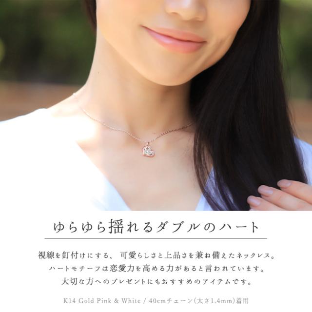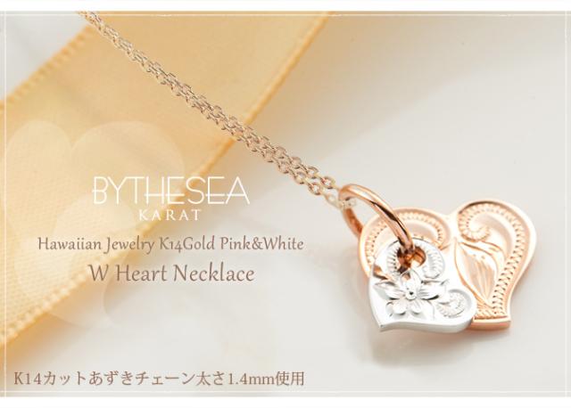 ゴールド ネックレス ハワイアンジュエリー ネックレス 刻印 無料 誕生石入れ可 Wハート 14K K14ピンク&ホワイトゴールド カットあずきチェーン太1.4mm ギフトラッピング可能 彼女 妻 女性 レディース プレゼント ホワイトデー 卒業式 入学式 【品番:CG-GP101PW-CH1020】