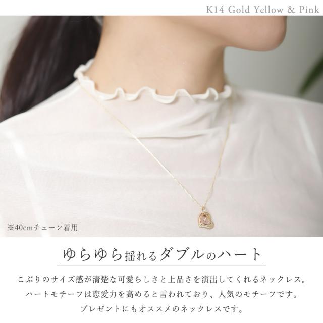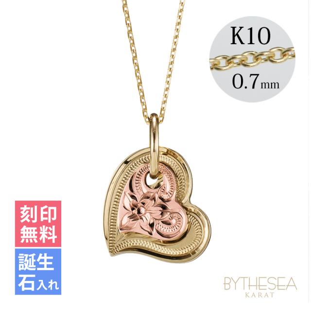 ゴールド ネックレス ハワイアンジュエリー ネックレス 刻印 無料 誕生石入れ可 Wハート 14K K14イエロー&ピンクゴールド K10 10Kあずきチェーン太0.7mm ギフトラッピング可能 彼女 妻 女性 レディース プレゼント ホワイトデー 卒業式 入学式 【品番:CG-GP101YP】