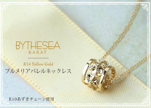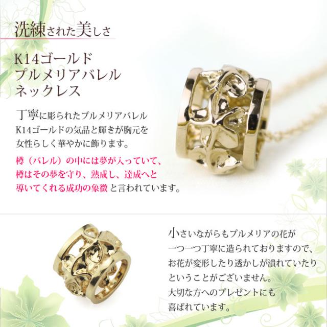 ゴールド ネックレス ハワイアンジュエリー ネックレス イエローゴールド バレル 樽 プルメリア 透かし模様 14K K14イエローゴールド K10 10Kあずきチェーン太0.7mm ギフトラッピング可能 彼女 妻 女性 レディース プレゼント クリスマス 【品番:CG-GP105】