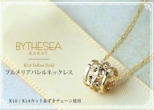 ゴールド ネックレス ハワイアンジュエリー ネックレス イエローゴールド バレル 樽 プルメリア 透かし模様 14K K14イエローゴールド 14k カットあずきチェーン太0.9mm ギフトラッピング可能 彼女 妻 女性 レディース プレゼント クリスマス 【品番:CG-GP105-CH123】