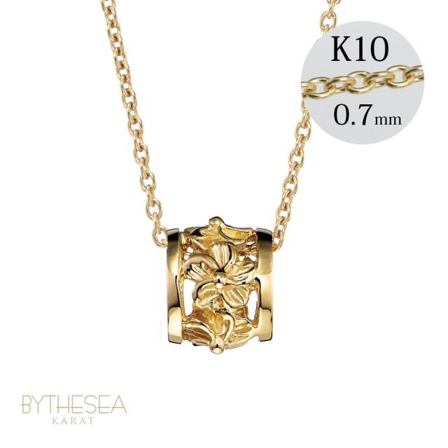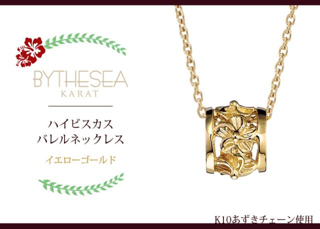 ゴールド ネックレス ハワイアンジュエリー ネックレス イエローゴールド バレル 樽 ハイビスカス 透かし模様 14K K14イエローゴールド K10 10Kあずきチェーン太0.7mm ギフトラッピング可能 彼女 妻 女性 レディース プレゼント クリスマス 【品番:CG-GP106】