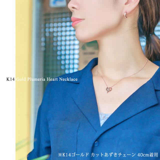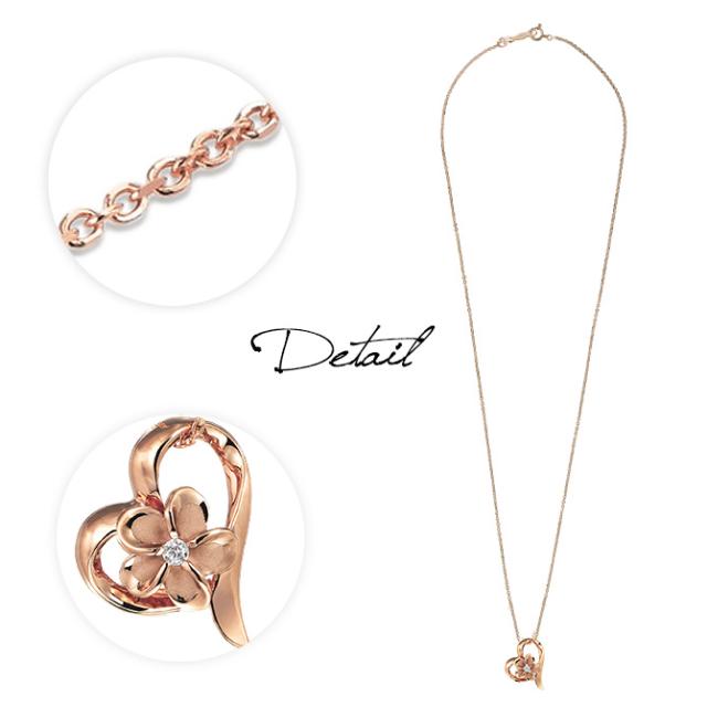 ゴールド ネックレス ハワイアンジュエリー ネックレス プルメリア ピンクゴールド ネックレス オープンハート K14 ダイヤモンド ジルコニア 14k カットあずきチェーン太0.9mm ギフトラッピング可能 彼女 妻 女性 レディース プレゼント クリスマス 【品番:CG-GP107R-CH123】