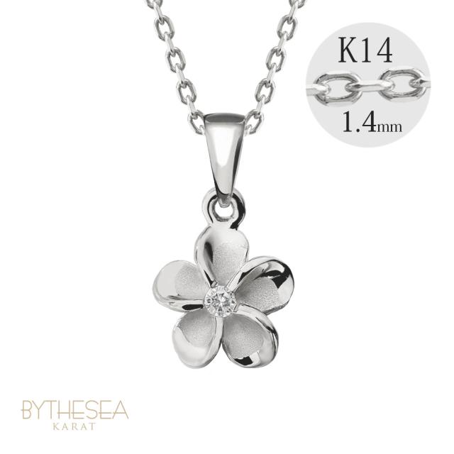 ゴールド ネックレス ハワイアンジュエリー ネックレス ホワイトゴールド ネックレス プルメリア K14ホワイトゴールド ダイヤモンド ジルコニア K14カットあずきチェーン太1.4mm ギフトラッピング可能 彼女 妻 女性 レディース プレゼント 【品番:CG-GP109W-CH1020】