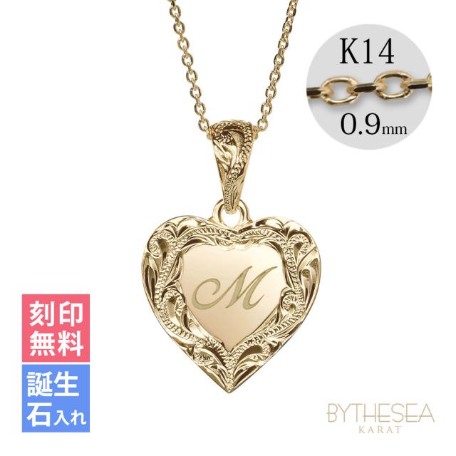 ゴールド ネックレス ハワイアンジュエリー ネックレス イニシャル イエローゴールド ネックレス 刻印 無料 誕生石入れ可 ハート型 イニシャル 14k k14カットあずきチェーン太0.9mm ギフトラッピング可能 プレゼント クリスマス 【品番:CG-GP110-CH123】