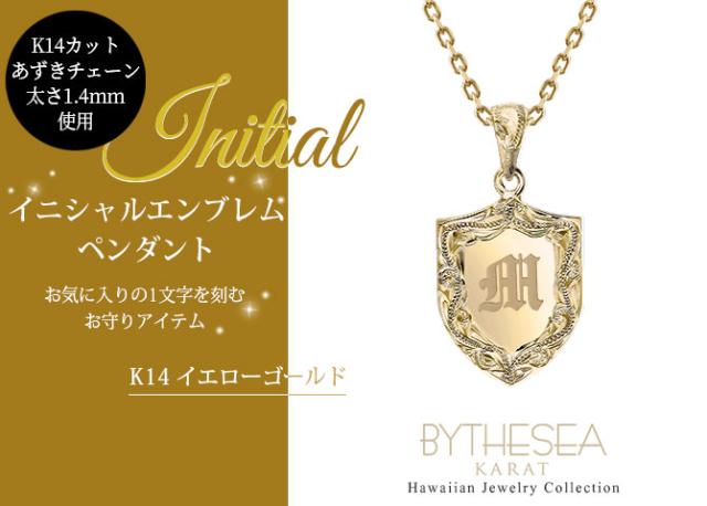 ゴールド ネックレス ハワイアンジュエリー ネックレス イニシャル イエローゴールド ネックレス 刻印 無料 誕生石入れ可 エンブレム型 イニシャル 14k k14カットあずきチェーン太1.4mm ギフトラッピング可能 プレゼント クリスマス 【品番:CG-GP111-CH1020】