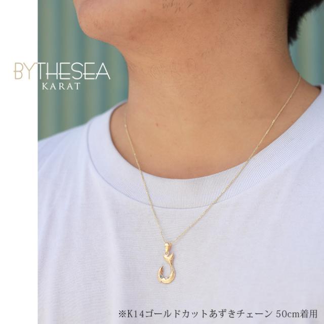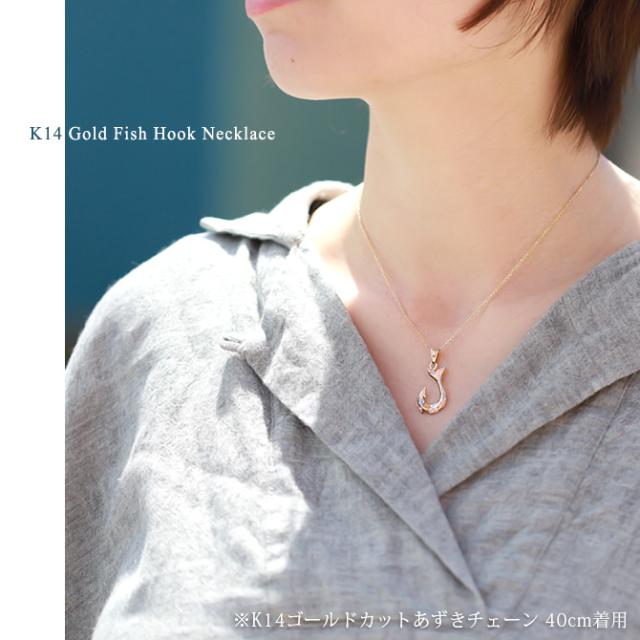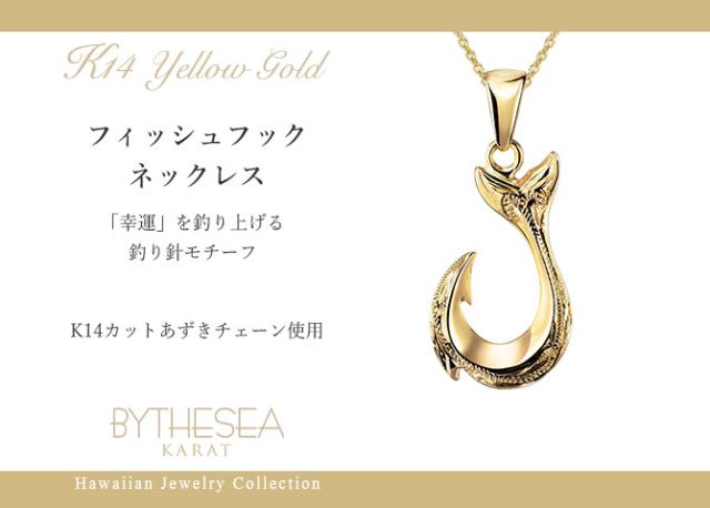 ゴールド ネックレス ハワイアンジュエリー フィッシュフック モアナ イエローゴールド ネックレス 刻印 無料 誕生石入れ可 幸せを釣上げる 14K K14 14k k14カットあずきチェーン太0.9mm ギフトラッピング可能 プレゼント クリスマス 【品番:CG-GP113-CH123】