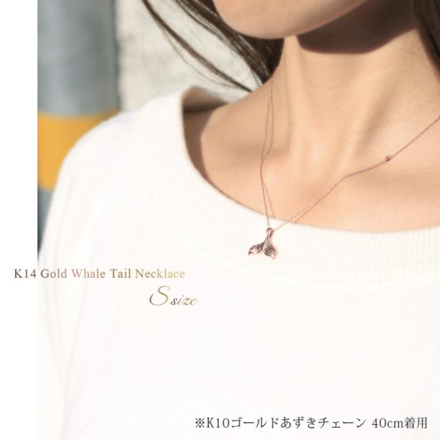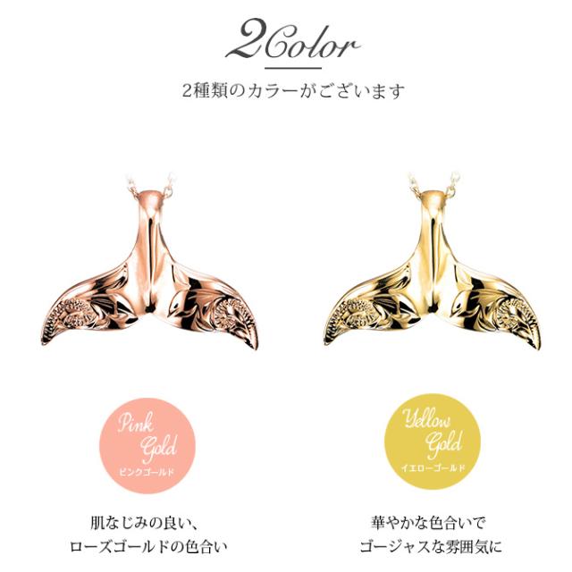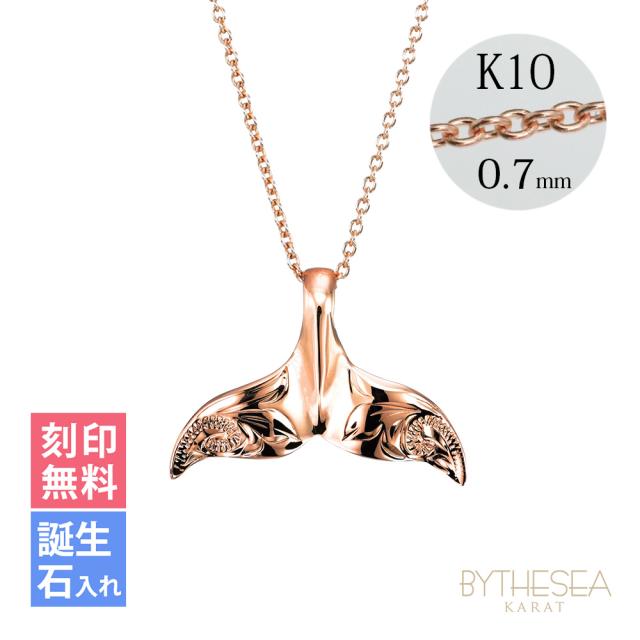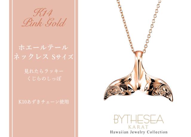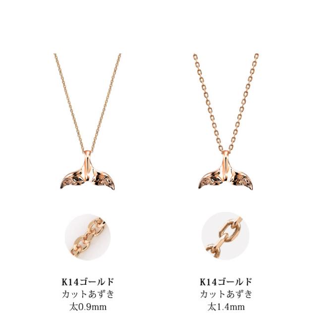 ゴールド ネックレス ハワイアンジュエリー ネックレス ホエールテール ピンクゴールド ネックレス Sサイズ 刻印 無料 誕生石入れ可 14K K14ピンクゴールド K10 10Kあずきチェーン太0.7mm ギフトラッピング可能 プレゼント ホワイトデー 卒業式 入学式 【品番:CG-GP114R】