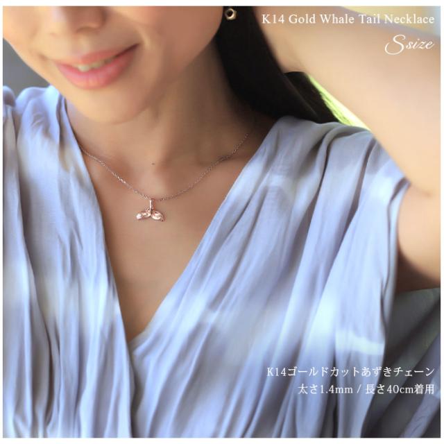 ゴールド ネックレス ハワイアンジュエリー ネックレス ホエールテール ピンクゴールド ネックレス Sサイズ 刻印 無料 誕生石入れ可 14K K14ピンクゴールド 14k k14カットあずきチェーン太1.4mm ギフトラッピング可能 ホワイトデー 卒業式 入学式 【品番:CG-GP114R-CH1020】