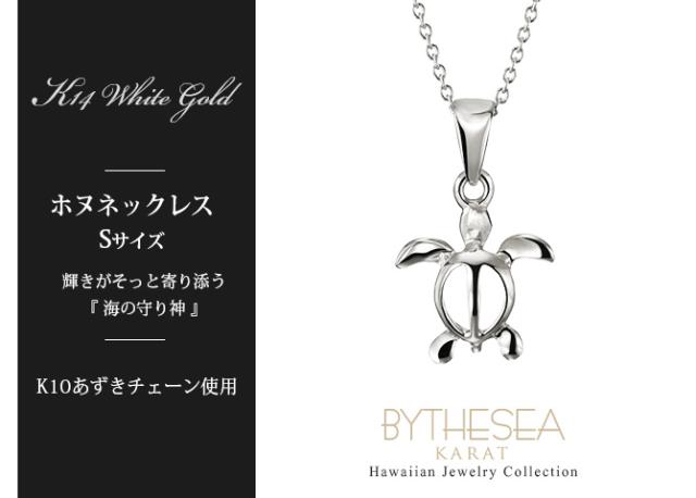 ゴールド ネックレス ハワイアンジュエリー ネックレス ホヌ ホワイトゴールド ネックレス 幸せを運ぶ ホヌ Sサイズ 14K K14ホワイトゴールド K10 10Kあずきチェーン太0.7mm ギフトラッピング可能 メンズ レディース プレゼント ホワイトデー 【品番:CG-GP116W】