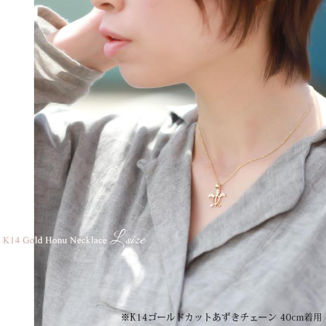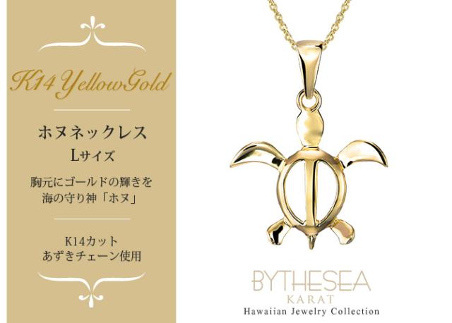ゴールド ネックレス ハワイアンジュエリー ネックレス ホヌ イエローゴールド ネックレス 幸せを運ぶ ホヌ Lサイズ 14K K14イエローゴールド 14k k14カットあずきチェーン太0.9mm ギフトラッピング可能 プレゼント ホワイトデー 卒業式 入学式 【品番:CG-GP117-CH123】